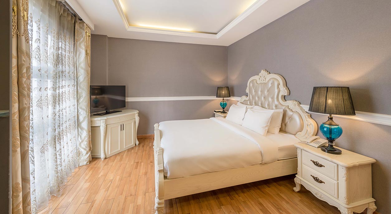 Đối với những người đi cùng đối tác hoặc đi công tác, phòng Deluxe ấm cúng là hoàn hảo. Với không gian rộng 20 m2 và giường đôi thoải mái, hãy thư giãn và phục hồi sức khỏe sau một ngày dài tham quan hoặc họp kinh doanh trong phòng này.